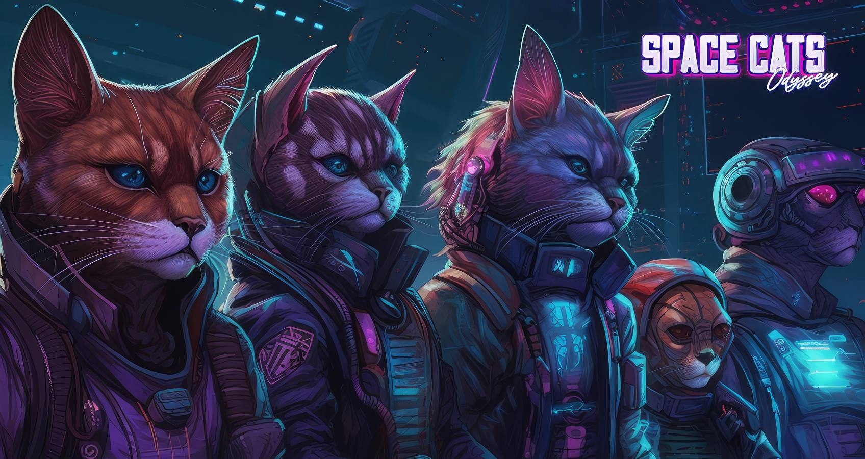 The Space Cats Odyssey begins in the Meow-T Star System, a recently uncovered galaxy situated in the remote corners of the universe. This star system is home to the vibrant Space Cats Station, a hub of activity and the heart of the system. Orbiting this station are seven distinct planets, each governed by a unique species of highly evolved felines. These planets are renowned for their cat-like civilizations, each boasting an astonishing 7,777 unique subspecies. These feline variants are diverse, differing in rarity, societal sophistication, and technological prowess.